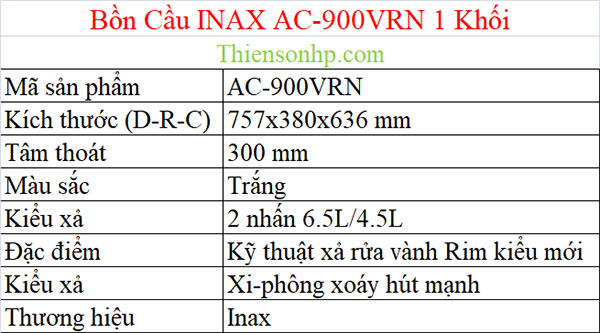 Bồn Cầu INAX AC-900VRN 1 Khối