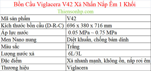 Bồn Cầu Viglacera V42 1 Khối Xả Nhấn Nắp Êm