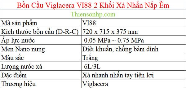 Bồn Cầu Viglacera VI88 2 Khối Xả Nhấn Nắp Êm