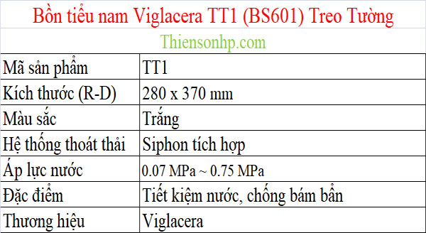 Bồn tiểu nam Viglacera TT1 (BS601) Treo Tường