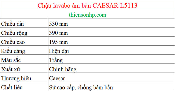 Thương hiệu: Chậu Lavabo âm bàn CAESAR