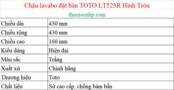 Chậu lavabo đặt bàn TOTO LT523R Hình Tròn