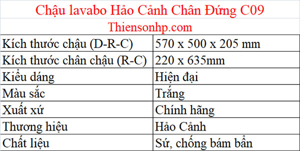 Chậu Lavabo Hảo Cảnh Chân Đứng C09