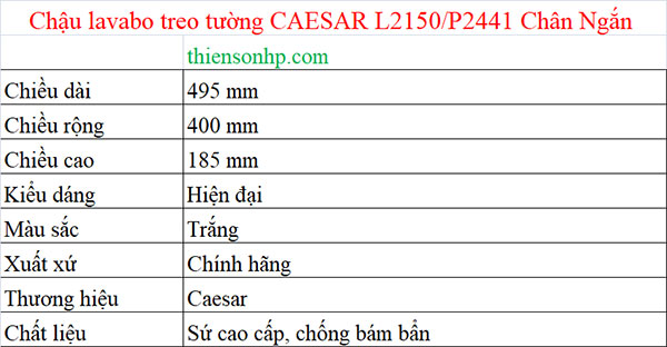 Chậu lavabo treo tường CAESAR L2150/P2441 Chân Ngắn