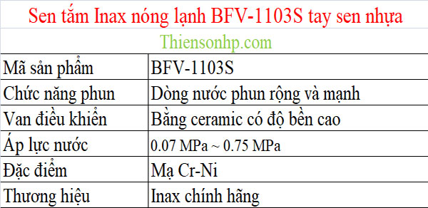 Sen Tắm Inax Nóng Lạnh BFV-1103S Tay Sen Nhựa